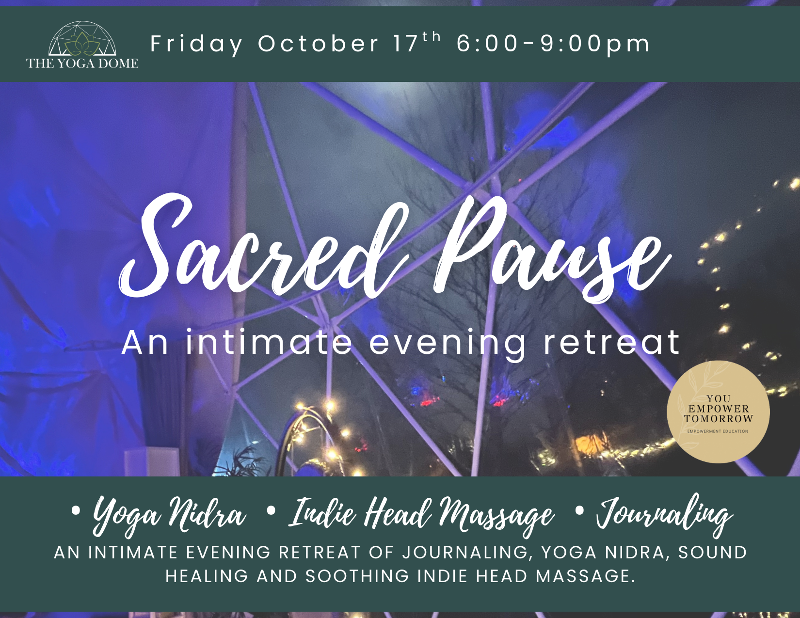 Through guided journaling, restorative yoga nidra, sound healing and the nurturing touch of an indie head massage, you will be held in a sanctuary of pause.