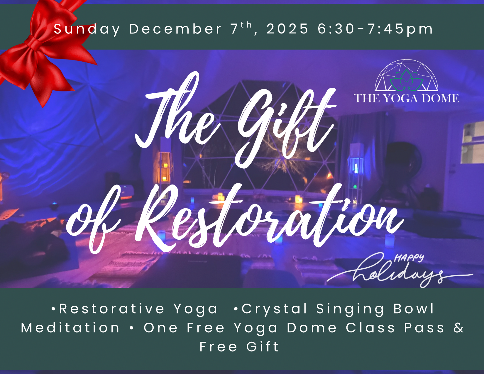 ✨ As a special thank-you, each guest will receive one free Yoga Dome class pass and a small holiday gift to carry the spirit of restoration home.